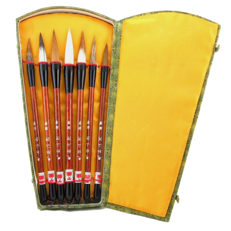 This calligraphy brush set includes seven mixed hair Chinese art brushes suited for writing calligraphy, Sumi-e Painting or brush painting. A great value for a set of seven Chinese calligraphy brushes offering a variety of mixed hairs, giving you a lot of freedom to create a wide variety of fine artworks.