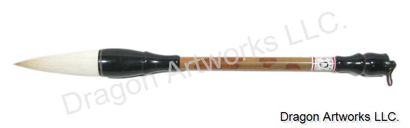 A large Chinese calligraphy brush made using fine sheep hair bristles and a natural bamboo handle.