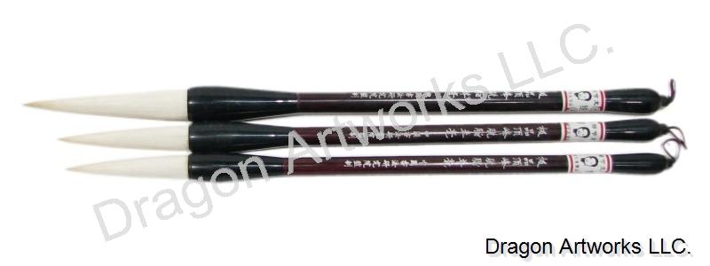 Suitable for professional artists, this sheep hair bristle calligraphy brush set has nice wood handles. Made by a very talented artisan in Beijing, China you can feel the quality of the workmanship.