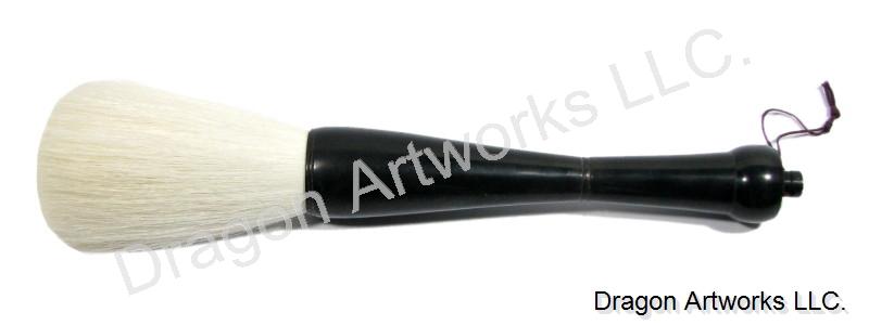 Large Chinese calligraphy brush with a cattle horn handle and natural sheep hair bristles, a great choice for writing large flowing Chinese calligraphy characters.